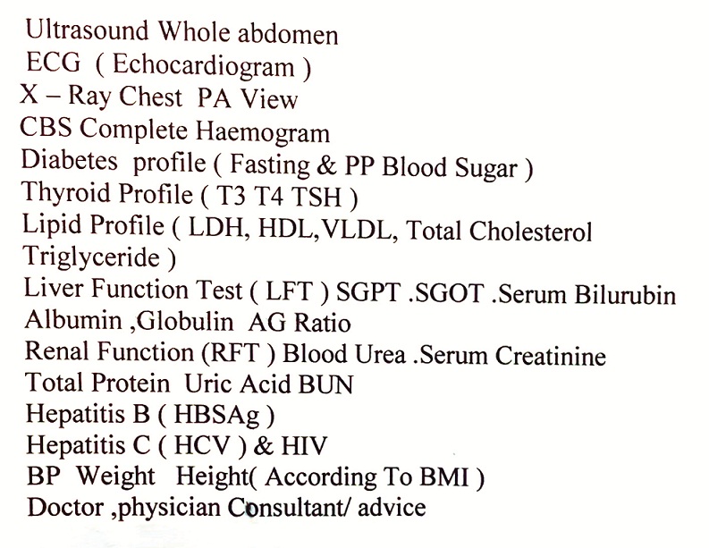 Full Body Checkup is a good way to assess your overall health. A full body checkup packages in P.K Aarogyam Health CHECK UP l mainly include lipid profile test, cholesterol test, liver function test, complete hemogram test, kidney function test, blood sugar test, thyroid test and more. For a full body checkup, you just need to give your blood sample which takes only a few minutes.. If you are above 30 and healthy then getting a full body checkup in patna once a year is advisable.